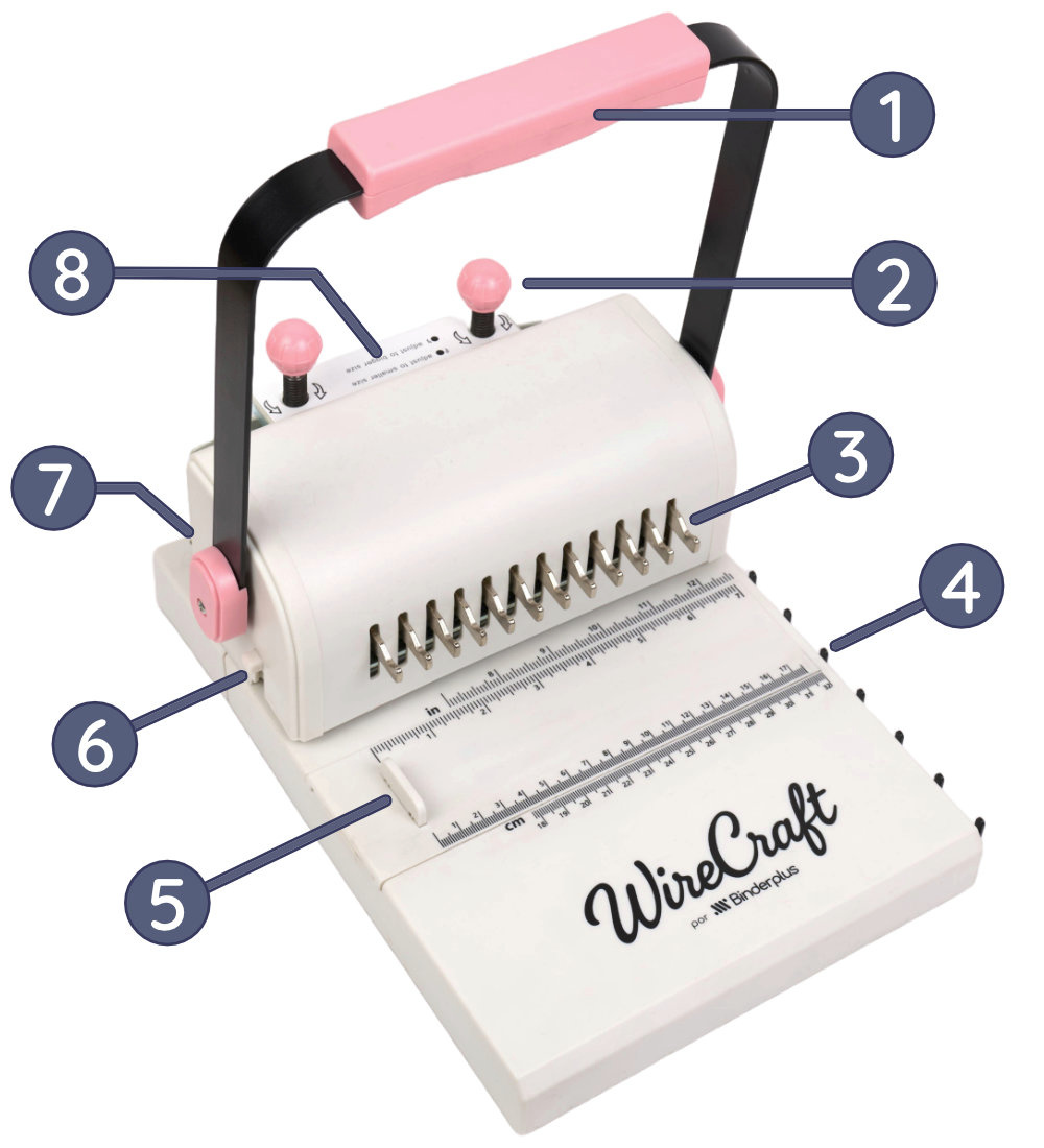 Si es necesario, deslice la regla (5) para lograr que las perforaciones queden centradas en la hoja. Siempre es recomendable primero hacer una perforación de prueba en una hoja borrador.