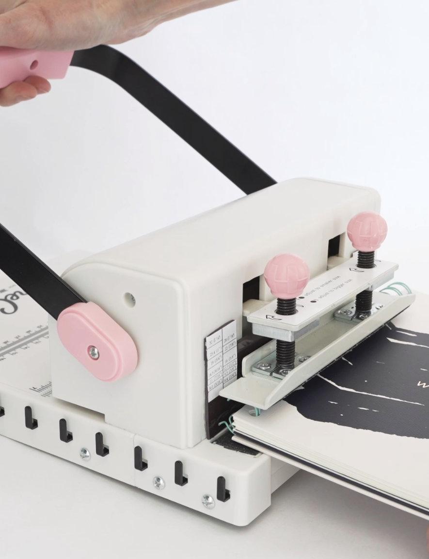 Antes de comenzar a usar la máquina con documentos importantes, perfora varias veces un papel borrador para eliminar cualquier resto de aceite en los punzones.